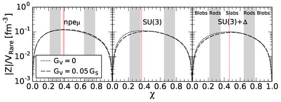 , which varies between 0 and 1, represents the volume fraction of quark matter at a given density. The quantities