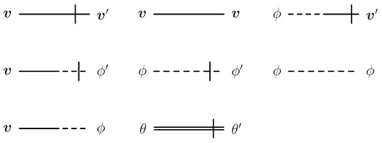 Ultraviolet renormalizability reveals itself in a presence divergences in Feynman graphs, which are constructed according to simple laws [21,24] using a graphical notation from Figure 1 and Figure 2. From a practical point of view, an analysis of the 1-particle irreducible Green functions, later referred to as 1-irreducible Green functions following the notation in Ref. [21], is of utmost importance.