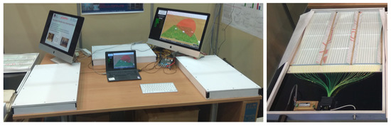 Cosmics detector unit includes the assembly of the unit’s components (scintillator tiles, WLS fibers, SiPM, and electronic devices). The wooden frame and the outer plastic box are prepared in advance having the necessary holes for the attachment of the components. Students do not use any dangerous equipment or high-voltage electrical circuits. During the first two days, students prepare the scintillator tiles, the Tyvek reflective paper, and the WLS fibers, as well as the cable connectors to the plastic box (