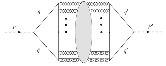 Figure 1 shows how anomaly contributes to the mass matrix (in the basis of quark–antiquark () pseudoscalar bound states P) by depicting how hidden-flavor pseudoscalars mix, transiting through anomaly-dominated gluonic intermediate states.