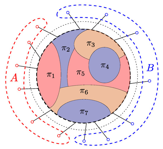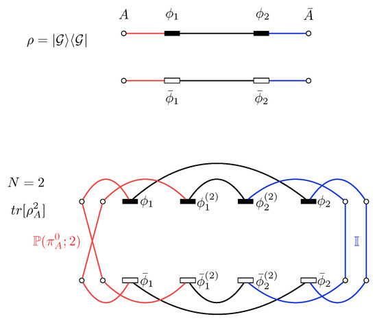 respectively corresponding to summations of Feynman graphs and labelled by permutation operators , at each node v, contracted with the densities at each link ℓ (see Figure 2). The difference between the reduced and full (density matrix) networks is encoded in the boundary condition, as is defined with on A of and on B of , while is defined with for all boundary region .