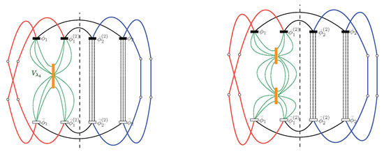 A representation of for the case of a simple 2-vertices graph is given in Figure 1.