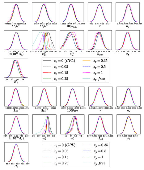 In most of the above dark energy equation-of-state parametrizations with a two-parameter description, one sets the “pivoting redshift” to zero, namely the point in which the two parameters describing are uncorrelated. However, due to possible rotational correlations between the two parameters of the two-parameter models, in principle one could avoid setting the pivoting redshift to zero straightaway, and let it as a free parameter [48,49,50].