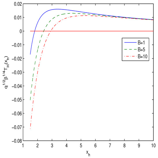 The plot of the reduced Hawking temperature is depicted in Figure 2 for different values of the parameter B (or l).