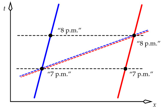 - Deines, S.D. Simultaneity, Chronometrology, and the Two Postulates of Relativity. Int. J. Appl. Math. Theor. Phys. 2017, 3, 43–49. [Google Scholar] [CrossRef]