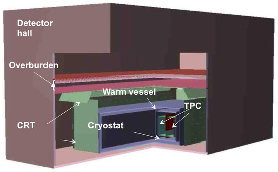 - Rubbia, C.; et al.; [ICARUS Collaboration] Underground operation of the ICARUS T600 LAr-TPC: First results. J. Instrum. 2011, 6, P07011. [Google Scholar] [CrossRef]
