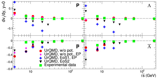- Adamczyk, L.; Adkins, J.K.; Agakishiev, G.; Aggarwal, M.M.; Ahammed, Z.; Alekseev, I.; Alford, J.; Anson, C.D.; Aparin, A.; Arkhipkin, D.; et al. (STAR Collaboration). Beam-Energy Dependence of the Directed Flow of Protons, Antiprotons, and Pions in Au+Au Collisions. Phys. Rev. Lett. 2014, 112, 162301. [Google Scholar] [CrossRef] [PubMed]