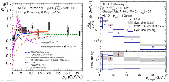 The left panel of Figure 4 shows the nuclear modification factor of prompt D mesons as recently measured by the ALICE measurement in p-Pb collisions at TeV.