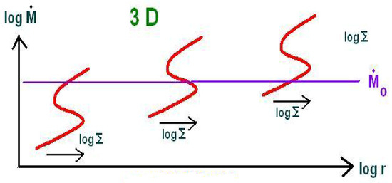 The models of the time-dependent evolution have been calculated by a number of authors [45,46,47,48,49,50,51], generally with the aim of comparing with some observational data for objects showing outbursts. Thus, in order to fit the outburst amplitude, some modifications of the model are usually introduced since generally the outbursts calculated without any modification had amplitudes that were too high. We will return to this issue later on. In general, these simulations showed regular or semi-regular changes of the predicted luminosity up to a few orders of magnitude. Computations were done in 1-D approximation, but globally, with calculated total duration of several of the viscous timescales at the stable outer part of the accretion disk. However, they still resolved the time evolution of the inner disk part in the thermal timescale.