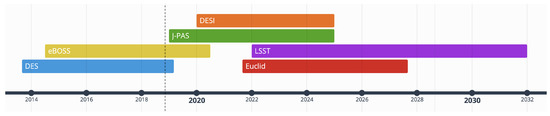 Timeline of the ongoing and upcoming galaxy surveys discussed in Section 2.