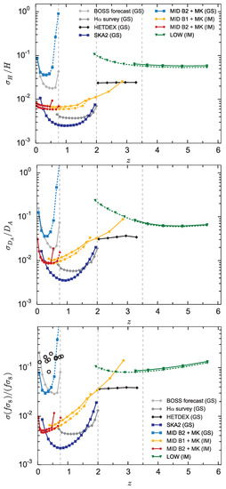 - Raccanelli, A.; Bull, P.; Camera, S.; Blake, C.; Ferreira, P.; Maartens, R.; Santos, M.; Bacon, D.; Doré, O.; Viel, M.; et al. Measuring redshift-space distortion with future SKA surveys. PoS 2015, AASKA14, 031. [Google Scholar]