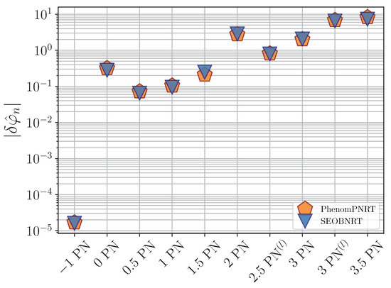 - Bohé, A.; Shao, L.; Taracchini, A.; Buonanno, A.; Babak, S.; Harry, I.W.; Hinder, I.; Ossokine, S.; Pürrer, M.; Raymond, V.; et al. Improved effective-one-body model of spinning, nonprecessing binary black holes for the era of gravitational-wave astrophysics with advanced detectors. Phys. Rev. D 2017, 95, 044028. [Google Scholar] [CrossRef]