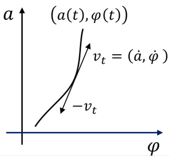 1]. In cosmology, we can also assume that the two symmetric solutions may form a universe–antiuniverse pair. In the universe, however, a forward oriented trajectory with respect to the scale factor component,