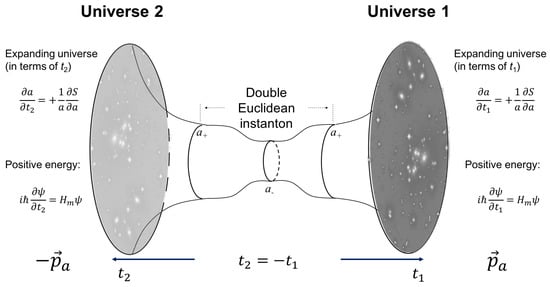 k that are left from the point of view of an observer of universe 2. Particles and antiparticles cannot interact, and therefore cannot annihilate each other, because of the Euclidean gap (a quantum barrier) that separates the universes (see