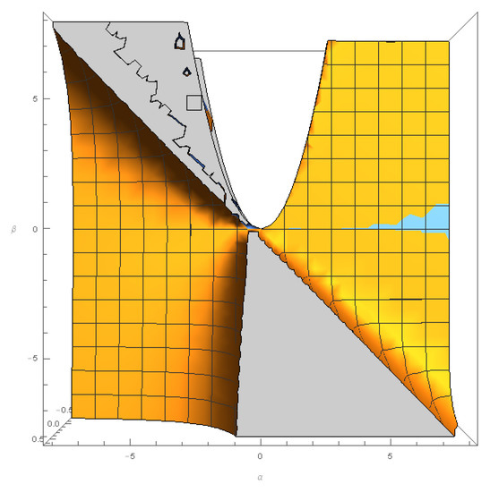 The plane - corresponding to the vacuum state of Figure 2. Here we can perceive a parabolic behavior between both parameters in some regions of the plane. This portion of the figure corresponds to the vacuum state for . The vacuum state for is the mirror image of this figure.