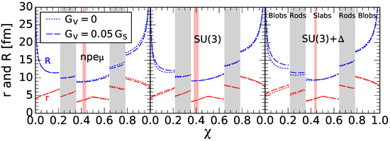 - Na, X.; Xu, R.; Weber, F.; Negreiros, R. Transport properties of a quark-hadron Coulomb lattice in the cores of neutron stars. Phys. Rev. D 2012, 86, 123016. [Google Scholar] [CrossRef]