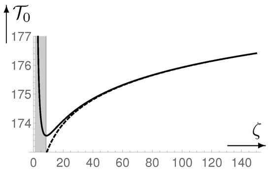 For the reasons depicted in Section 3.2, we do not employ this equation. Instead, we apply the equation which is obtained, if, in the above derivation, from Equation (A5) onward, a is eliminated by using , in place of , and a dimensionless volume . (The initial volume is , and the corresponding dimensionless volume is .) The result of this procedure is