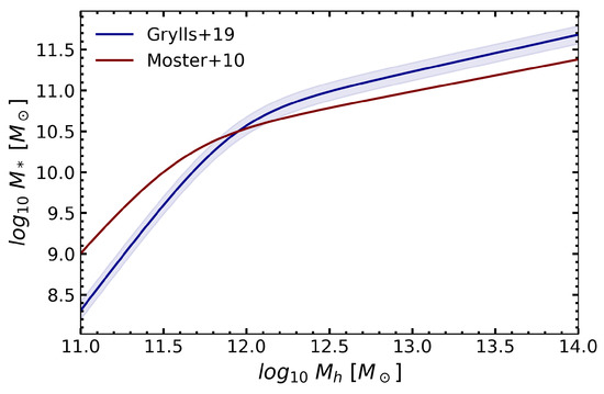 - Grylls, P.J.; Shankar, F.; Leja, J.; Menci, N.; Moster, B.; Behroozi, P.; Zanisi, L. Predicting fully self-consistent satellite richness, galaxy growth and starformation rates from the STastical sEmi-Empirical modeL STEEL. Month. Notice. Royal Astron. Soc. 2019, 2560. [Google Scholar] [CrossRef]