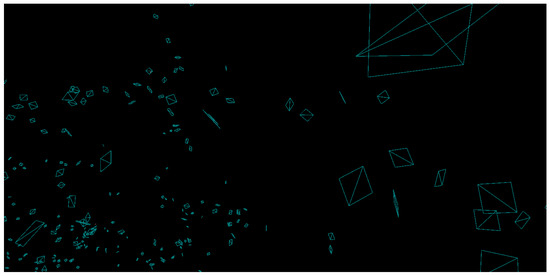 A wireframe view of a small area with Astera. The instanced static mesh objects used in Astera to represent galaxies can be seen.
