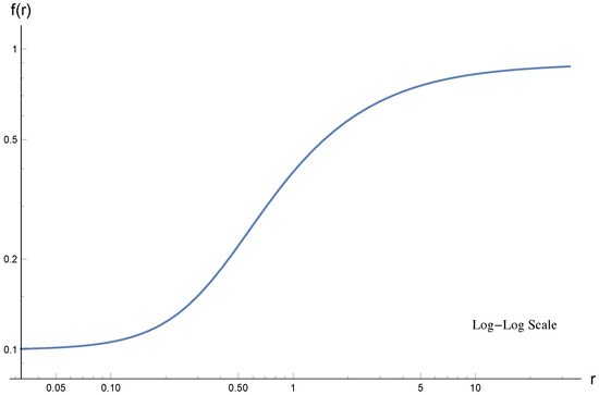 From the last Equation (12), it follows that in the range , the asymptotic behavior of metric function will be more general than that given in (15), and it will be non-Halileian, namely,