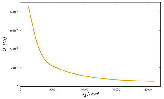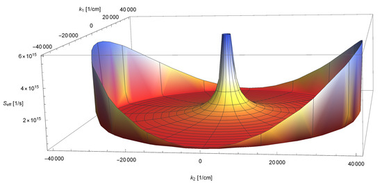 Thus, at this stage, we study Equation (59) with CI (65) and (66), which do not contain the photon distribution function. We only take into account a spontaneous emission from the carrier currents produced by an external electric field. Integrals (65) and (66) contain quadratic combinations of the distribution functions of the carriers. These functions should be found as a result of solving an auxiliary problem on the basis of KE (25) or equivalent Equation (27).