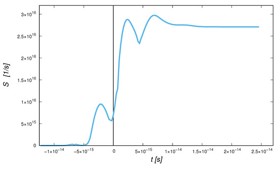 - Smolyansky, S.A.; Fedotov, A.M.; Dmitriev, V.V. Kinetics of the vacuum plasma in e+e− a strong electric field and problem of radiation. Mod. Phys. Lett. A 2020, 35, 2040028. [Google Scholar] [CrossRef]