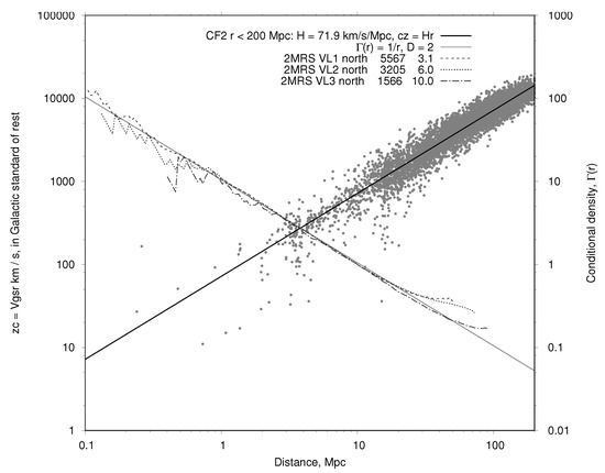 - Pietronero, L.; Montuori, M.; Sylos Labini, F. On the fractal structure of the visible universe. In Critical Dialogues in Cosmology; Turok, N., Ed.; World Scientific: Singapore, 1997; p. 24. [Google Scholar]