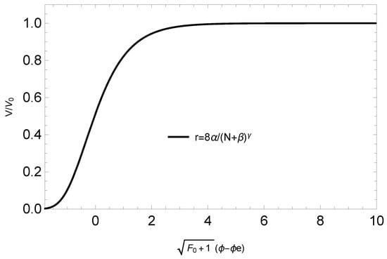 Taking and , and comparing the theoretical predictions (26) and (27) with the Planck 2018 data [5], we obtain the constraints on the parameters and shown in Figure 1. Taking , and , the theoretical predictions are and . With these parameters, the plot of the potential is shown in Figure 2.
