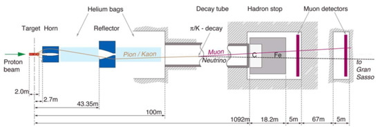- Acquistapace, G.; Baldy, J.L.; Ball, A.E.; Bonnal, P.; Buhler-Broglin, M.; Carminati, F.; Cennini, E.; Elsener, K.; Ereditato, A.; Falaleev, V.; et al. The CERN Neutrino Beam to Gran Sasso (NGS). Available online: http://inspirehep.net/record/473325/ (accessed on 8 February 2020).