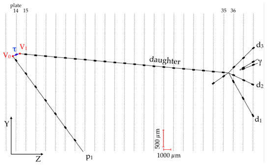 where is the CNGS flux, is the detector efficiency, and is the CC cross-section. In this formula, we expressed the oscillation phase in practical units: km for L and GeV for E. In particular, a high energy beam is beneficial to produce tau leptons with a large cross-section ( for E well above 3.5 GeV) and boosted in the laboratory frame. Such boost is needed to observe the decay in flight of the taus in the OPERA nuclear emulsion sheets (see below) and increases substantially . On the other hand, an energy much larger than reduces the oscillation probability as ∼ due to the fixed baseline of LNGS. The actual CNGS beam energy has thus been optimized accounting for these requirements and 17 GeV is the value that maximizes Equation (6). As a matter of fact, the CNGS observes oscillations off the peak of the oscillation maximum since: