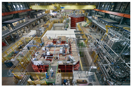 - Abgrall, N.; et al. [NA61/SHINE Collaboration] Measurements of π±, K± and proton double differential yields from the surface of the T2K replica target for incoming 31 GeV/c protons with the NA61/SHINE spectrometer at the CERN SPS. Eur. Phys. J. C 2019, 79, 100. [Google Scholar] [CrossRef]