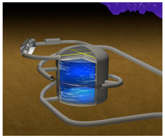 - Fukuda, Y.; et al. [Super-Kamiokande Collaboration] The Super-Kamiokande detector. Nucl. Instrum. Meth. A 2003, 501, 418. [Google Scholar] [CrossRef]