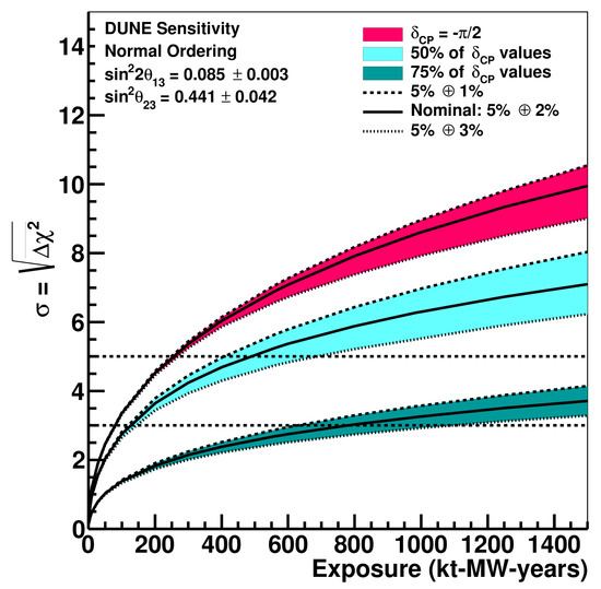 - Acciarri, R.; et al. [DUNE Collaboration] Long-Baseline Neutrino Facility (LBNF) and Deep Underground Neutrino Experiment (DUNE): Conceptual Design Report, Volume 1: The LBNF and DUNE Projects. Available online: https://arxiv.org/abs/1601.05471 (accessed on 10 February 2020).