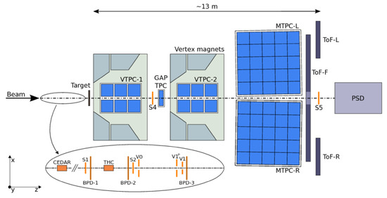 - Abgrall, N.; et al. [NA61/SHINE Collaboration] Measurements of π±, K±, , Λ and proton production in proton–carbon interactions at 31 GeV/c with the NA61/SHINE spectrometer at the CERN SPS. Eur. Phys. J. C 2016, 76, 84. [Google Scholar] [CrossRef]