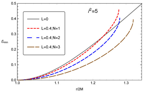 Figure 4 illustrates the radial dependence of minimum energy for the different values of the conformal parameters L and N. From the Figure 4 one can easily see that the value of minimum energy decreases with the increase of conformal parameters L and N near the event horizon.