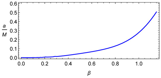 The degeneracy plot showing the dependence of rotation parameter a on . The line corresponds to the matching values of parameters for the same values of ISCO.