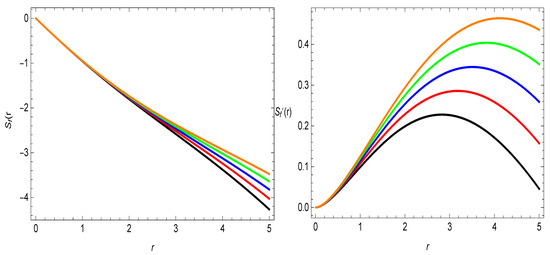 - In Figure 1, the behavior of the shape-function, i.e., , is regularly increasing with positive nature for the five different values of the parameter .