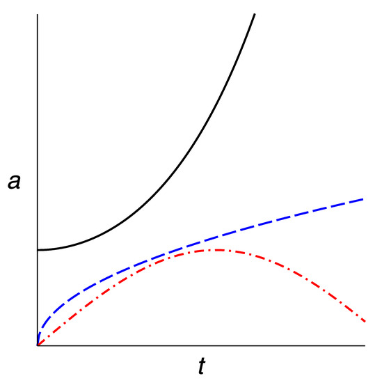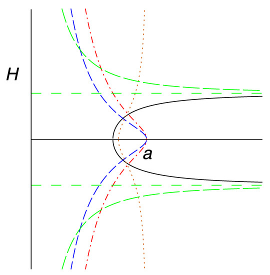 - Felten, J.E.; Isaacman, R. Scale factors R(t) and critical values of the cosmological constant Λ in Friedmann universes. Rev. Mod. Phys. 1986, 58, 689. [Google Scholar] [CrossRef]