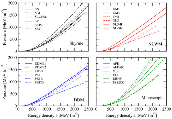 - Oertel, M.; Hempel, M.; Klähn, T.; Typel, S. Equations of state for supernovae and compact stars. Rev. Mod. Phys. 2017, 89, 015007. [Google Scholar] [CrossRef]