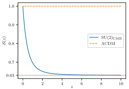 Not yet considering linear and next-to-linear perturbations in SU(2) to shape typical CMB large-angle anomalies in terms of late-time screening/antiscreening effects [37], Equation (5) has implications for the Dark Sector if one wishes to maintain the successes of the standard cosmological model at low z where local cosmography and fits to distance-redshift curves produce a consistent framework within CDM. As it was shown in [34], the assumption of matter domination at recombination, which is not unrealistic even for SU(2) [34], implies that