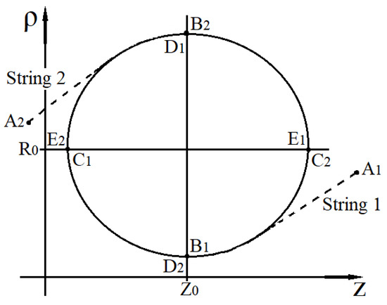 For the situation shown in Figure 7 during one complete oscillation both null strings are located twice on the same surface (they meet), namely, at the points , and , (; 2). The meeting surface is the surface .