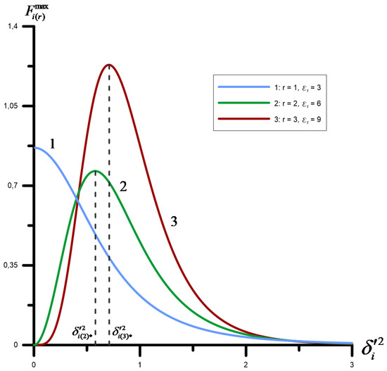 Therefore, for the channel B, the resonant frequency function depends on the parameter and has two distinctive areas of dependency: and . Additionally, the parameter value designates 3 intervals of function: , , and in which the research obtains principally different results. All these areas of parameters and magnitudes may be represented in the following two solutions. For the first diapason: