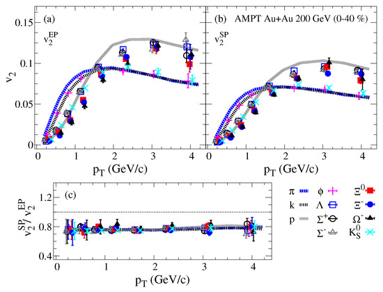 - Singha, S.; Nasim, M. Scaling of elliptic flow in heavy-ion collisions with the number of constituent quarks in a transport model. Phys. Rev. C 2016, 93, 034908. [Google Scholar] [CrossRef]