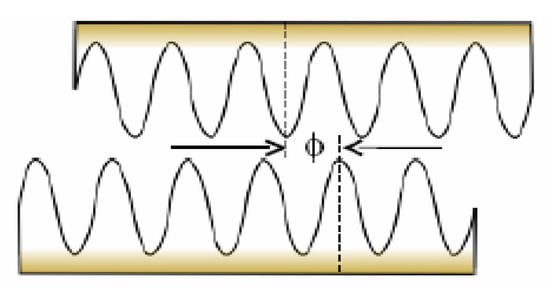 The schematic of two sinusoidally corrugated plates having the phase shift between corrugations.
