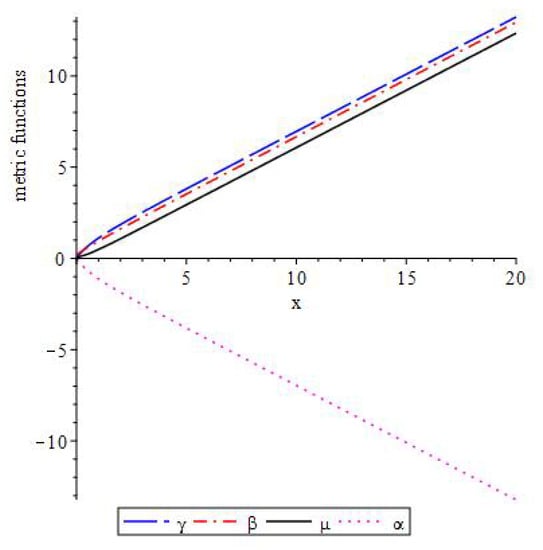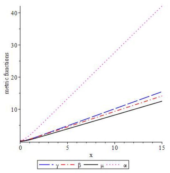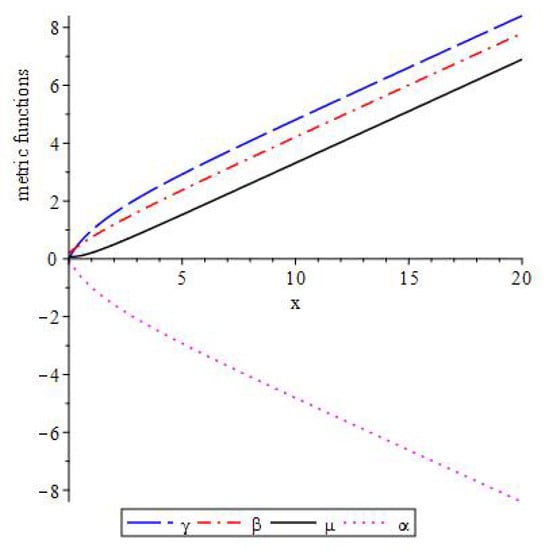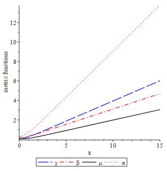 Plot of metric functions for Heisenberg–Ivanenko typenonlinearity with for quasiglobal coordinate.