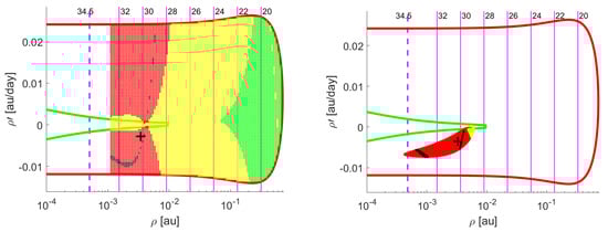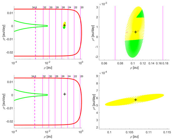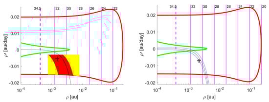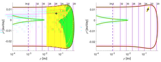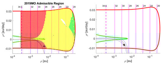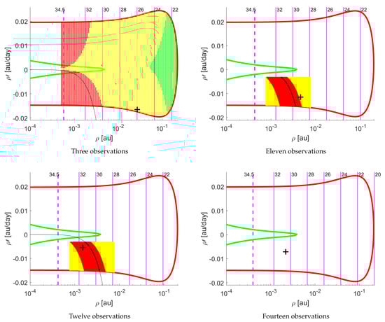 - Milani, A.; Sansaturio, M.E.; Tommei, G.; Arratia, O.; Chesley, S.R. Multiple solutions for asteroid orbits: Computational procedure and applications. Astron. Astrophys. 2005, 431, 729–746. [Google Scholar] [CrossRef]
