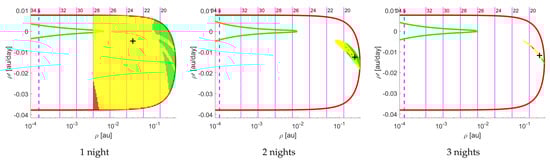 - Milani, A.; Gronchi, G.F.; Knežević, Z.; Sansaturio, M.E.; Arratia, O. Orbit determination with very short arcs: II. Identifications. Icarus 2005, 179, 350–374. [Google Scholar] [CrossRef]