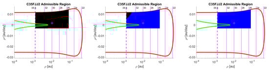 - Tommei, G.; Milani, A.; Rossi, A. Orbit determination of space debris: Admissible regions. Celest. Mech. Dyn. Astron. 2007, 97, 289–304. [Google Scholar] [CrossRef]