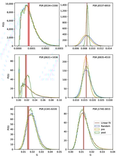 - Lyne, A.G.; Shemar, S.L.; Graham Smith, F. Statistical studies of pulsar glitches. Mon. Not. R. Astron. Soc. 2000, 315, 534–542. [Google Scholar] [CrossRef]
