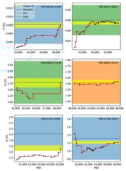 - Wong, T.; Backer, D.C.; Lyne, A.G. Observations of a Series of Six Recent Glitches in the Crab Pulsar. Astrophys. J. 2001, 548, 447–459. [Google Scholar] [CrossRef][Green Version]